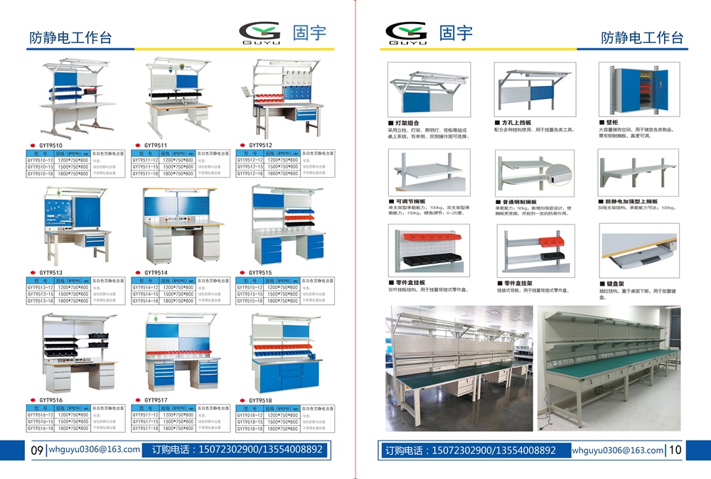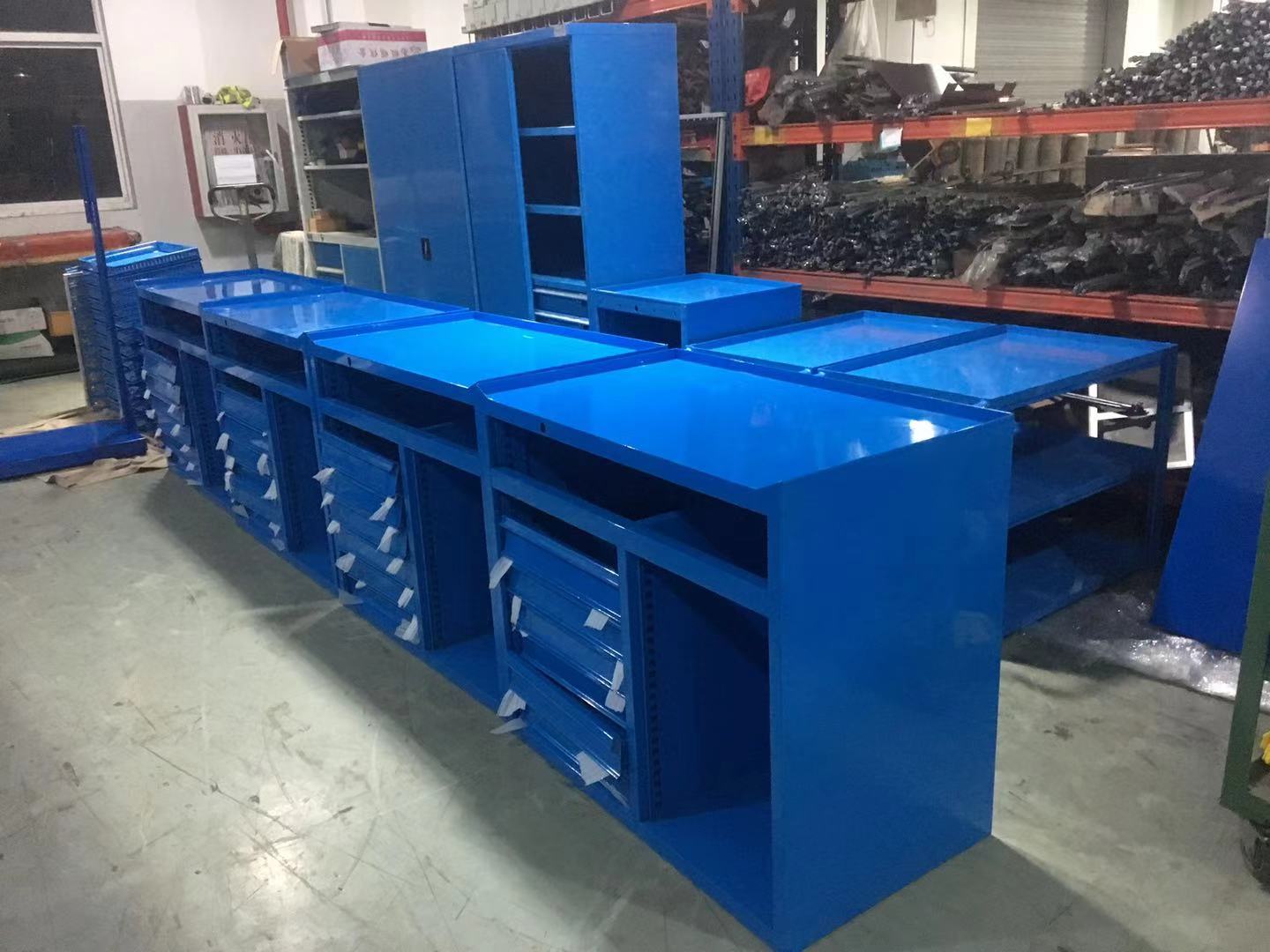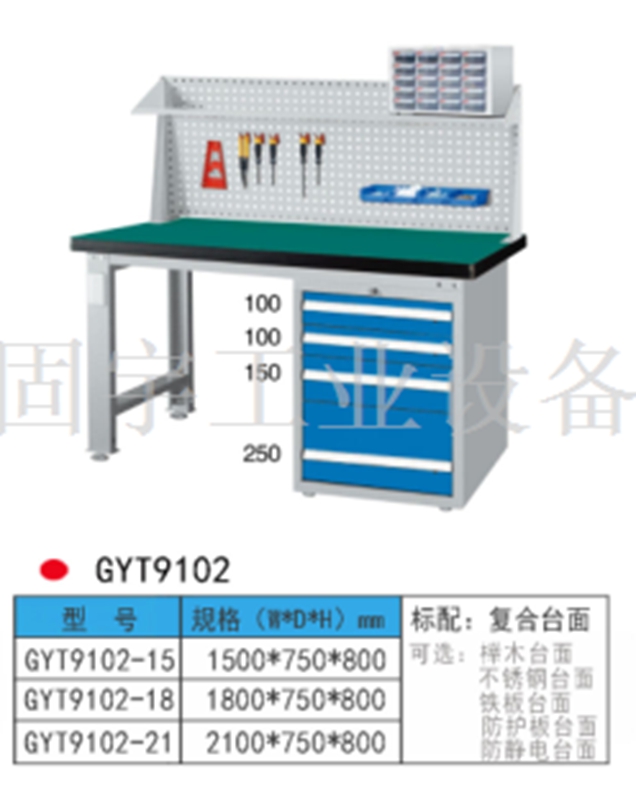 工作臺采用優質冷扎板精工制作而成,堅固的工作桌框架,牢固平穩,可使工作桌承重1000kg;多種工作桌面選擇,可配合不同使用的要求;工具吊柜(箱),側柜(箱)燈架,調節腳杯,,外形美觀;層板,抽屜質量上乘,承重大,抽屜內可根據需要任意分隔;節約空間,適用性強。 范圍 工作臺適合于模具、鉗工、檢測、維修、組裝等各種不同應用場合,具有良好的耐腐蝕性,耐臟性,抗沖擊性和承重能力強。桌面經特殊處理,具有防腐、抗沖擊力強等特點,多種桌面的選擇,可配合不同的使用要求;所配置的抽屜、柜門方便使用者存儲工具;桌角上預留電源孔,方便安裝電源插座。工作臺(桌)分為輕型(可承重300公斤),中型和重型工作臺(桌)可承重1000公斤及特制的工作臺。可根據需要靈活地配置各種吊柜、單柜、雙柜等,可加裝掛板,電器板,燈頂板、調節腳杯,輪子,擱板等桌上部件,具有多種選擇,能夠滿足各種工位的需求。 工作臺材質采用優質冷軋鋼板,表面采用靜電噴涂處理而制成,堅固的工作桌框架,牢固平穩,可使工作桌臺面均勻承重達到1000kg。桌面有多種材質組成,適用于各行業辦公場所??膳浜瞎ぞ吖瘢豕?,掛板,單開門柜使用。抽屜、承辦承重大,性能好,抽屜里可根據需求配置分隔條 工作臺分類:根據臺面的不同分為:櫸木工作臺、鋼板合成工作臺、防靜電工作臺、高分子工作臺;根據承重的不同分為:輕型工作臺、中型工作臺、承重型工作臺;根據功能的不同分為:多功能工作臺、帶吊柜工作臺等等。 臺面優勢 復合臺面特性臺面平整度高,撓曲度為0.8mm。表面2mm厚度為高分子材料,使臺面耐酸堿、耐磨、耐油。臺面采用高壓纖維板,使臺面更具有抗沖擊性。特別的圓弧桌角,不易受撞擊損壞。高強度塑膠包邊堅固、實用、不易損壞、不易脫落。櫸木桌面特性桌板使用櫸木與防水膠經加壓制造而成。表面光滑平整,美觀不易變型,耐油、耐熱、耐酸、耐堿,適合一般工廠作業與精密模具維修,儀器置放與檢測等用途。不銹鋼包面特性桌板使用高壓合成板,表面包1-2mm砂面不銹鋼板,以達美觀耐用。耐高溫、耐磨損、耐油、使用壽命長,為多功能桌板,適合一般工廠、食品業、研究室、電子廠無塵室使用。輕型工作臺可承重300kg-500KG防火板臺面特性輕巧、美觀、耐磨、防火。層壓板臺面特性工作桌面平整,變型小,強度高,抗沖擊性好。 標準顏色 產品顏色 標準的顏色可分為6種:淺藍色(RAL5015), 電腦灰(RAL7035), 機床綠(RAL6011),深藍色(RAL5017)。
