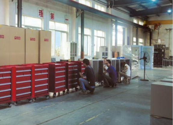 工具車適用于工具、刀具、零部件在生產現場中的定置管理,使您的物品存取工作真正做到準時、準確、高效、低耗。 結構特點 編輯 1、 高強度的結構設計和噴粉表面處理工藝,能適應工廠較復雜的工作環境。 2、 裝有優質軸承和導軌,保證抽屜承受額定載荷時亦能輕松順暢開合。 3、 根據需要可自由選擇配置不同高度的抽屜,充分滿足生產現場的需要。 4、 可以配置帶有防油膠墊的頂框,保護放置物品不受損害以及防止物品滑落。 5、 鎖具先進,只用一把鎖就能鎖上所有的抽屜,保證物品安全。 6、 柜體底部配有墊腳,保護柜體在放置或移動時不受損壞,方便用叉車搬運。 多種表面顏色,滿足生產現場整體布置的需求 7. 全寬型鋁合金抽屜把手及可更換的標簽,美觀、方便、實用。 8. 先進的抽屜安全扣設計,保證抽屜在關閉后不會意外滑出。 9. 更有4種國際標準色以供選擇(ral5005,ral5015,ral6011,ral7035),滿足生產現場整體布置的需要。 10. 采用國際先進水平鎖具,只一把鎖就能鎖上所有抽屜,保證物品安全。 11. 加底框及高品質的腳輪,推行平穩,方向性好,剎車固定后不會滑動。 12. 先進的互鎖裝置,在打開一個抽屜時其他抽屜自動鎖死不能打開,防止抽屜全部打開造成柜體傾斜。 13.工具車的工作臺面采用獨特的注塑成型,強度更高。 14.中央鎖采用環形鎖匙結構,可延長鎖的使用壽命。 15.工具車四角都配有新型復合材料制成的防撞條,能有效的緩沖意外碰撞造成的損害。 16.工具車的重型車輪,125MM直徑更容易跨越障礙物。 17.臺面有特殊的小凹槽,可用來盛放黃油等液體,方便使用。 18.工具車抽屜內可以存放豐富的工具模塊。 19.抽屜兩側采用疊加式滾珠滑軌,具有優秀的順暢度。 20.工具車的每個抽屜擁有自鎖功能。 21.工具車兩側采用網孔板內加鋼板的雙層鋼板設計,使車體更加堅固,持久耐用。 工具車與工具柜的區別 工具車是可以移動的工具柜,適合在生產現場安全、合理地運送工具和配件。 工具車由各種型號的工具柜增加頂柜和腳輪等移動部件組成。 工具車的外型尺寸的高度:重型工具車為所選用的工具柜的高度加上140mm;輕型工具車為所造工具柜高度加上80mm。高強度的結構設計和陰極電泳底漆表面處理工藝,能適應工廠較復雜的工作環境。